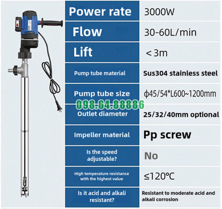 Máy bơm thùng phuy inox JDT-3000W-LGG120 đang được nhiều doanh nghiệp lựa chọn nhờ hiệu suất bơm mạnh mẽ, thiết kế bền bỉ và khả năng ứng dụng linh hoạt trong nhiều ngành công nghiệp. Sự kết hợp giữa công nghệ bơm hiện đại và vật liệu chất lượng cao giúp thiết bị đáp ứng tốt các yêu cầu vận hành trong thực tế.