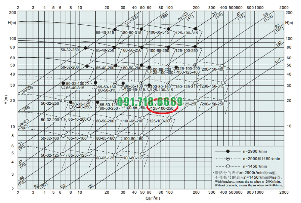 Đường cong hiệu suất của bơm nước cánh hở công nghiệp model IHK100-80-125
