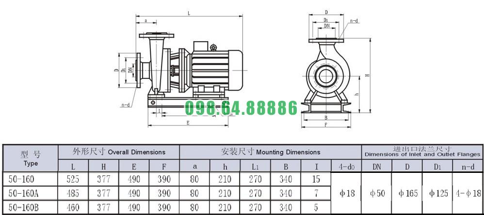 Bảng thông số kỹ thuật bơm nước trục ngang SLW-ISW50-160