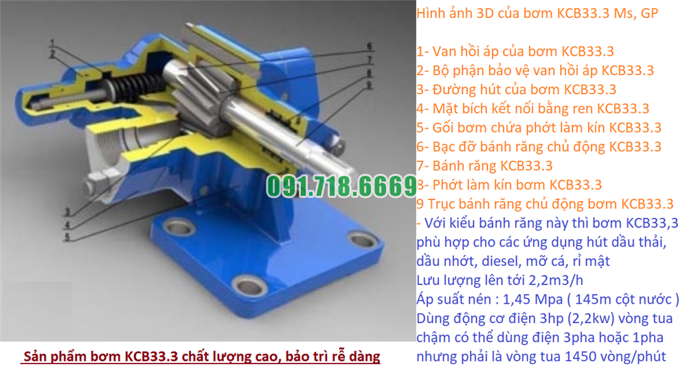 Tổng đài liên hệ mua máy bơm bánh răng KCB33.3 đường kính 21mm tốc độ 1400 vòng/phút công suất 3HP