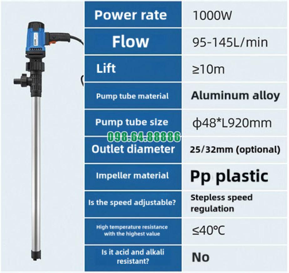 Thông số bơm chất lỏng cắm điện JDT-1000W-L92