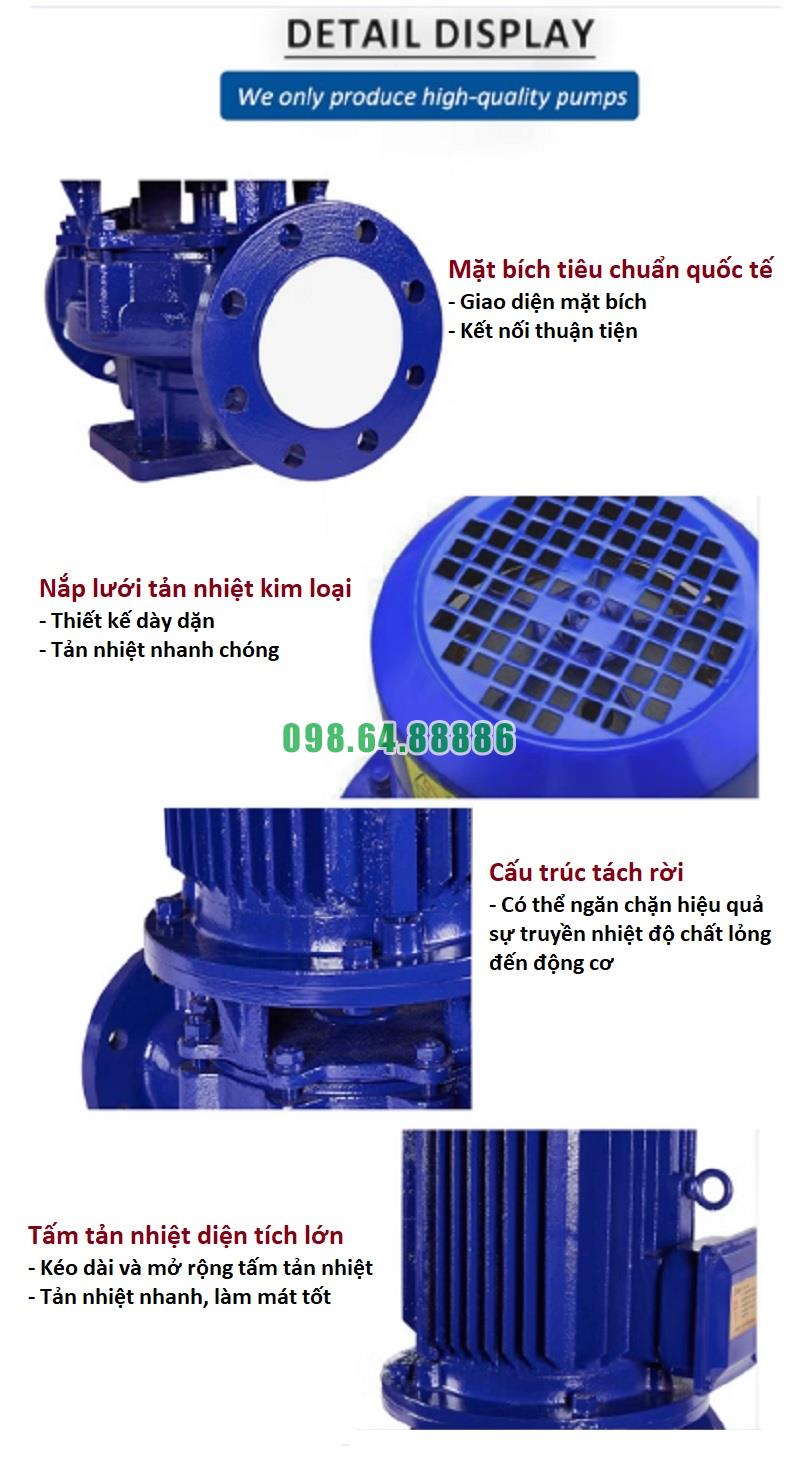 Bơm cấp nước trục đứng, bơm lắp thẳng trục đứng, bơm booster inline ISG65-160, IRG65-160 4kw