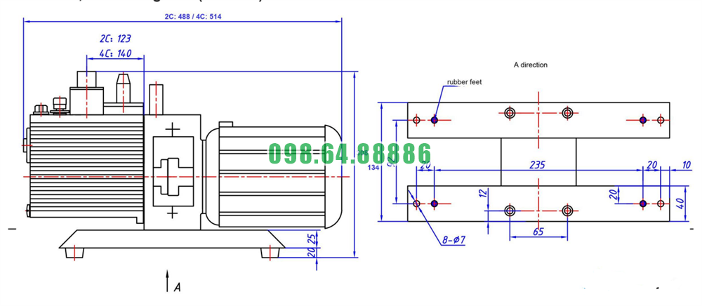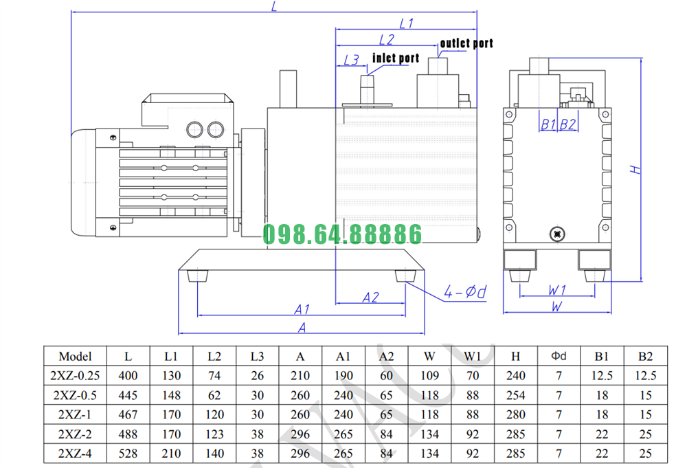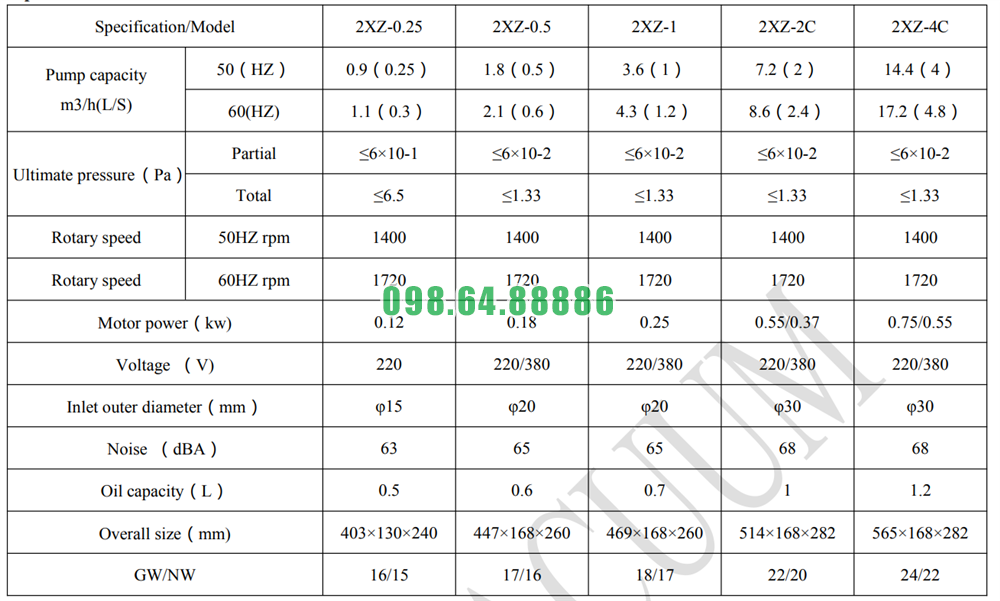 Bơm chân không hỗ trợ model 2XZ-2 lưu lượng 7.2 m³