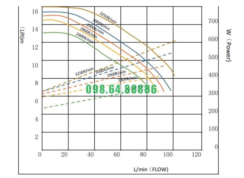 Đường cong hiệu suất bơm hóa chất điện áp 24v và 48v