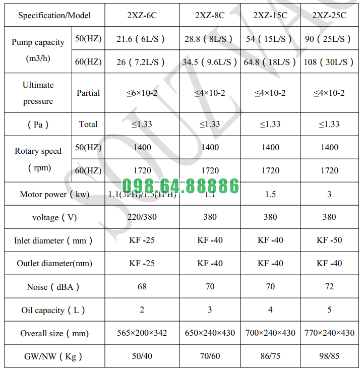 Bơm hút chân không cho máy phủ model 2XZ-15C động cơ 1.5 kW
