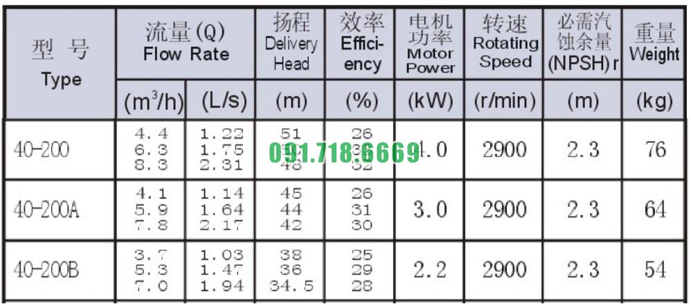 Bơm li tâm trục ngang mode SLW-ISW40-200