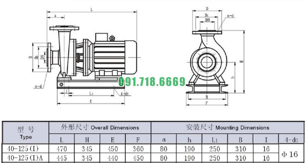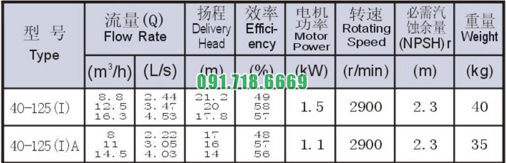 Bơm nước li tâm trục ngang mode SLW-ISW40-125-I động cơ 1.5 kw công suất 4.53 L/s