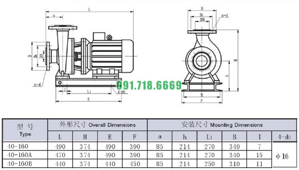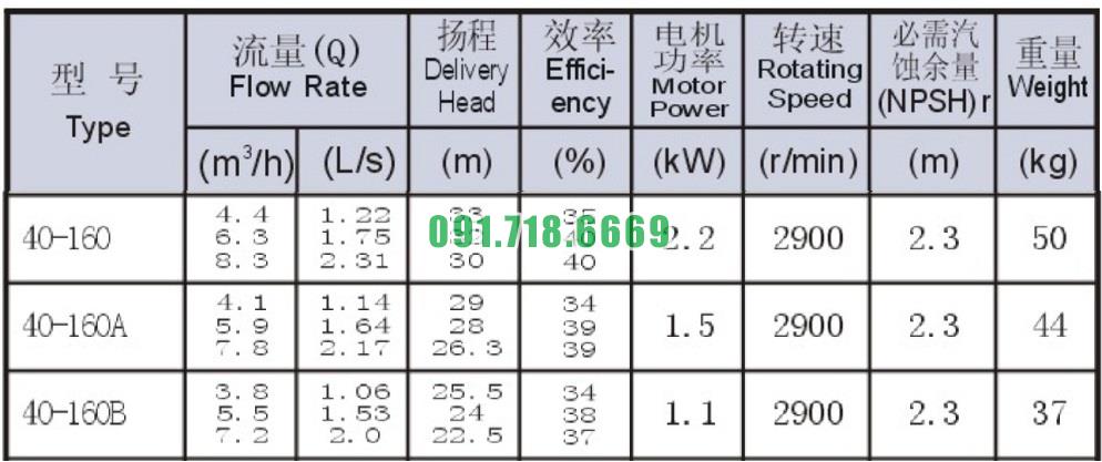 Bơm nước li tâm trục ngang SLW-ISW40-160 động cơ 2.2 kw lưu lượng max 8.3 m3/h