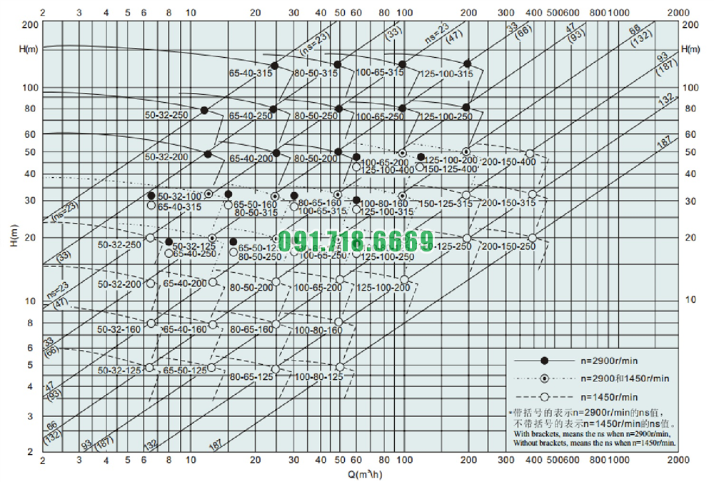 Đường cong hiệu suất của bơm li tâm cánh hở vỏ inox 316L model IHK200-150-400