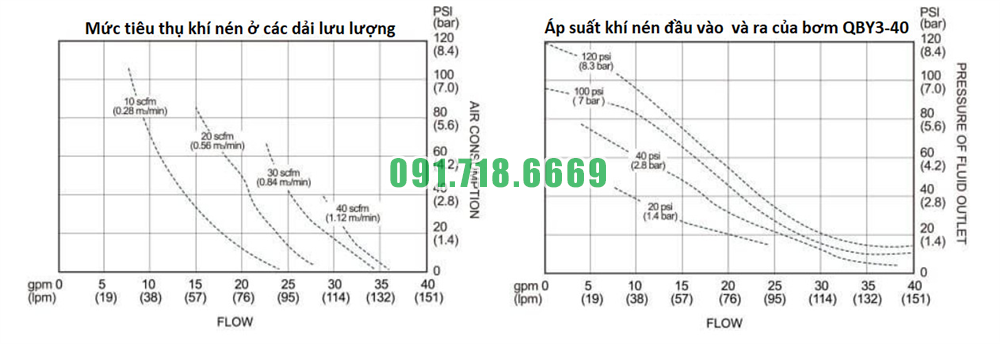 Đường cong hiệu suất của máy bơm màng vỏ nhưa nhựa PP QBY3-40STFF
