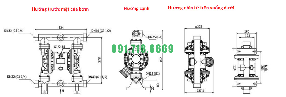 Bản vẽ kích thước của máy bơm màng vỏ nhưa nhựa PP QBY3-40STFF