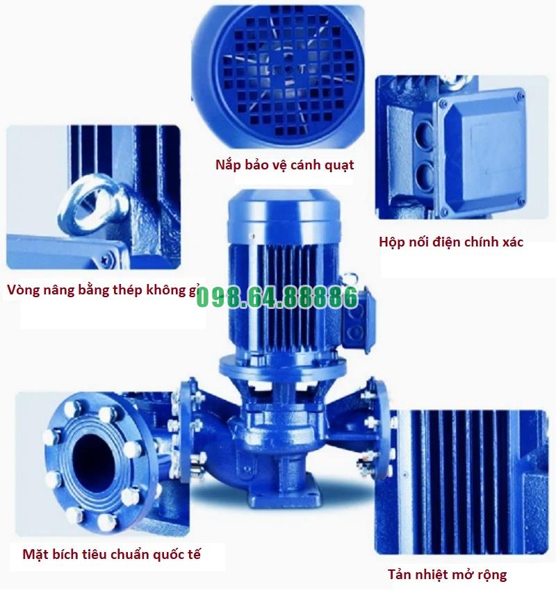 Máy bơm đồng trục thẳng đứng, bơm lùa, bơm đường ống ISG65-200, IRG65-200, 7.5kw, 25m3