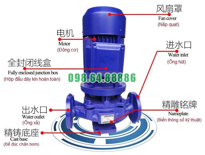 Máy bơm inline, bơm lắp thẳng trục đứng ISG100-250, IRG100-250 11kw, 100m3, 20m