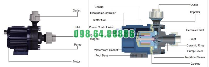 ✅ Không có tiếp xúc cơ khí giữa trục quay và cánh bơm, giúp giảm ma sát, giảm tiếng ồn.