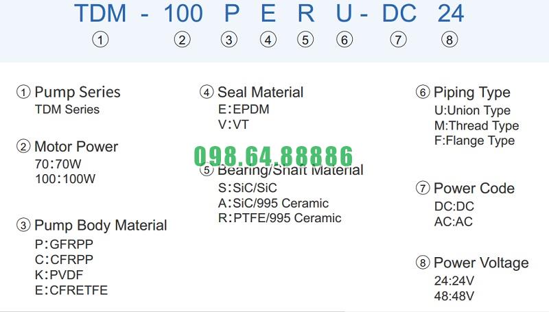 Máy bơm ly tâm dẫn động từ TDM-200PERU-DC24 tốc độ quay 1600 vòng/phút